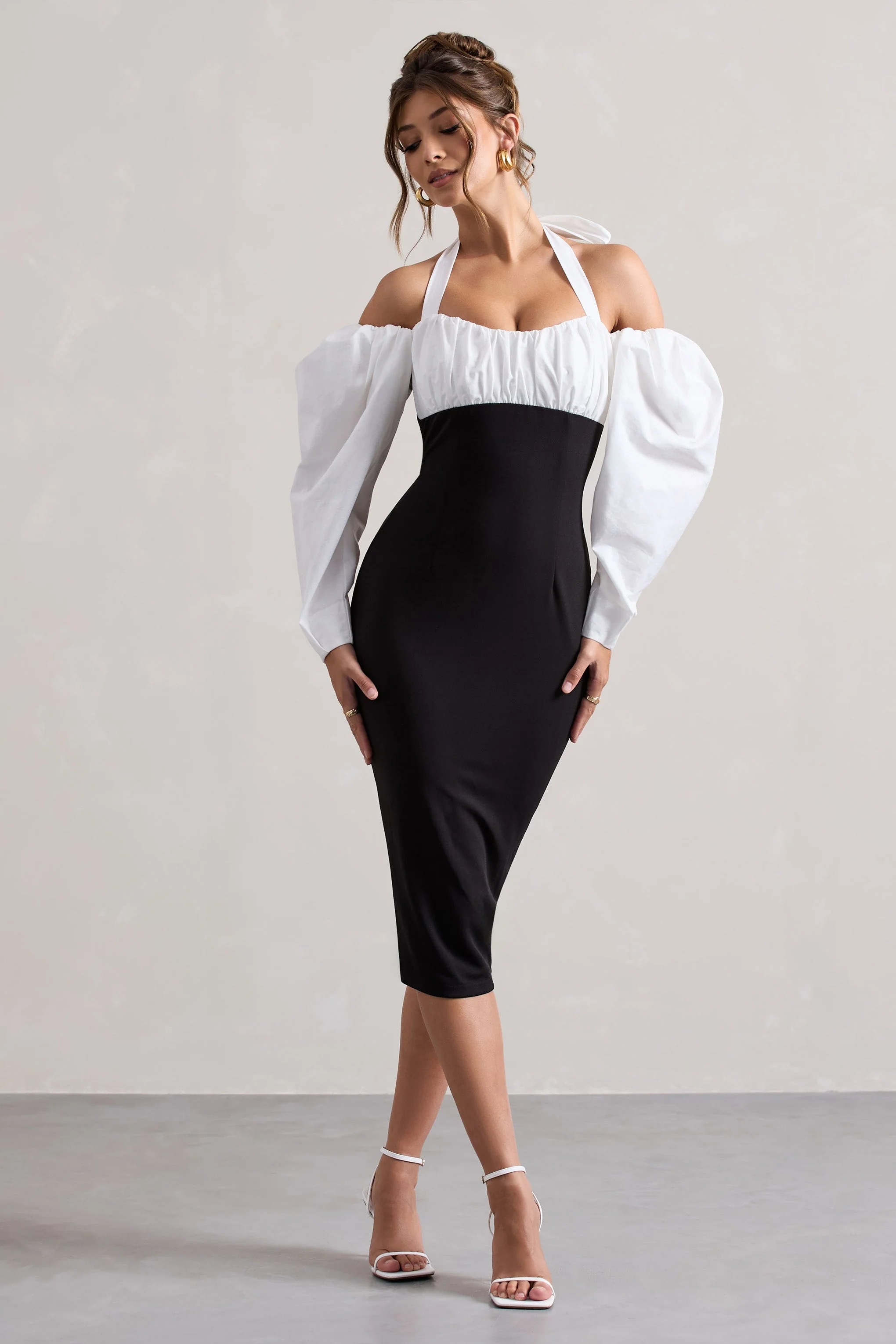 Couture Client | Black Halter-Neck Puff Sleeve Midi Dress