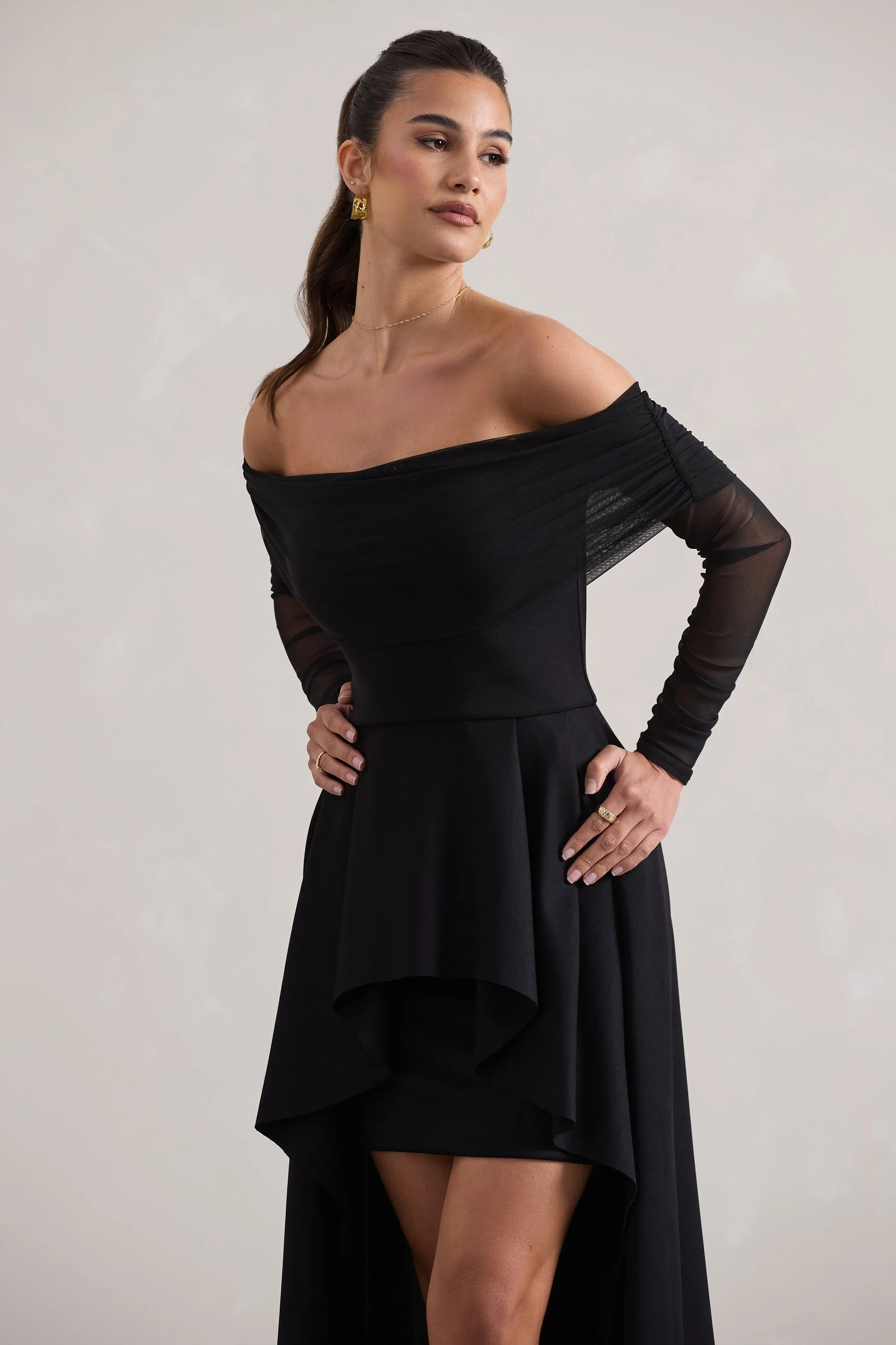 Stefani | Black Embellished Cowl-Back Long Sleeve Mini Dress