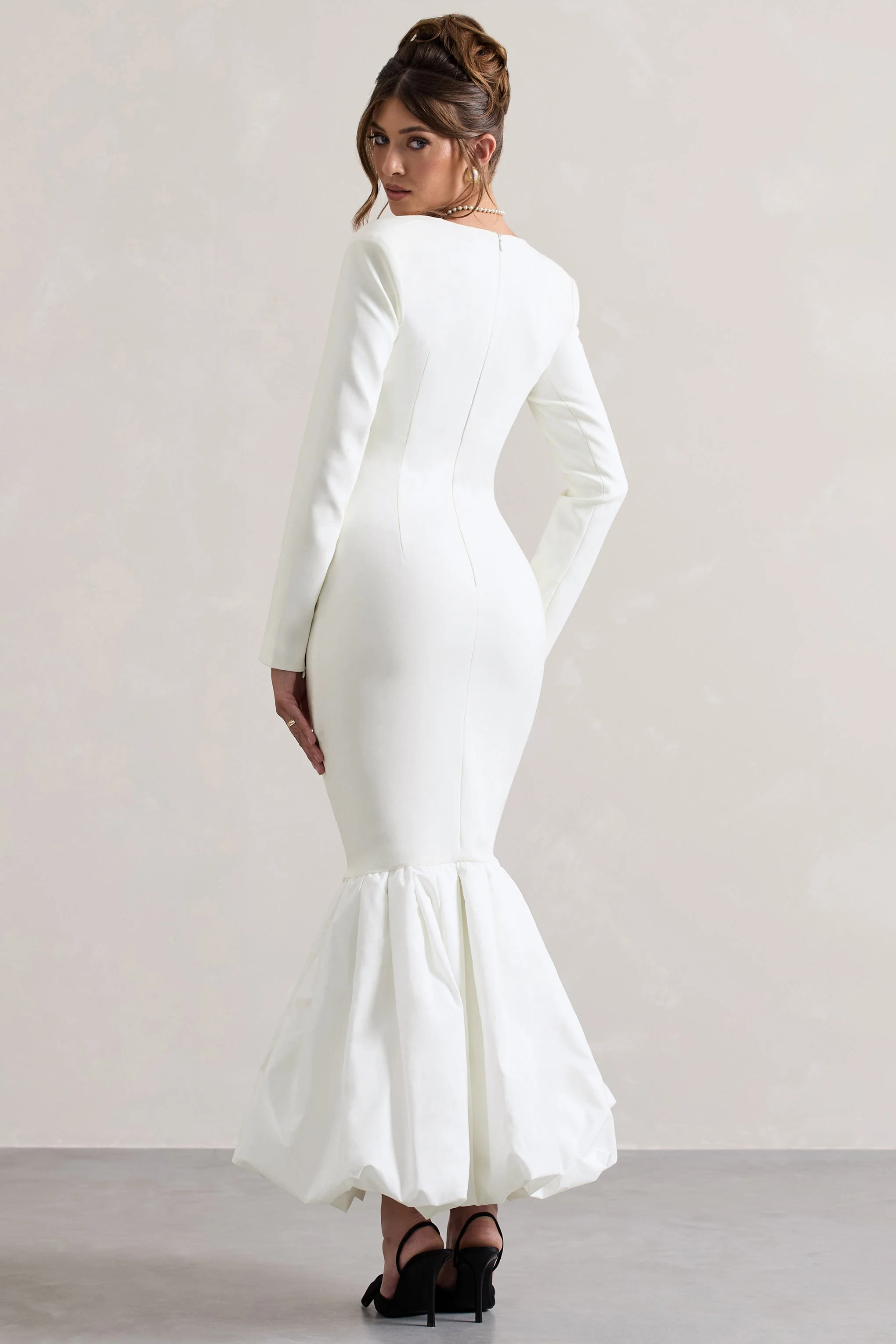 London | Cream Sweetheart Maxi Dress With Volume Hem