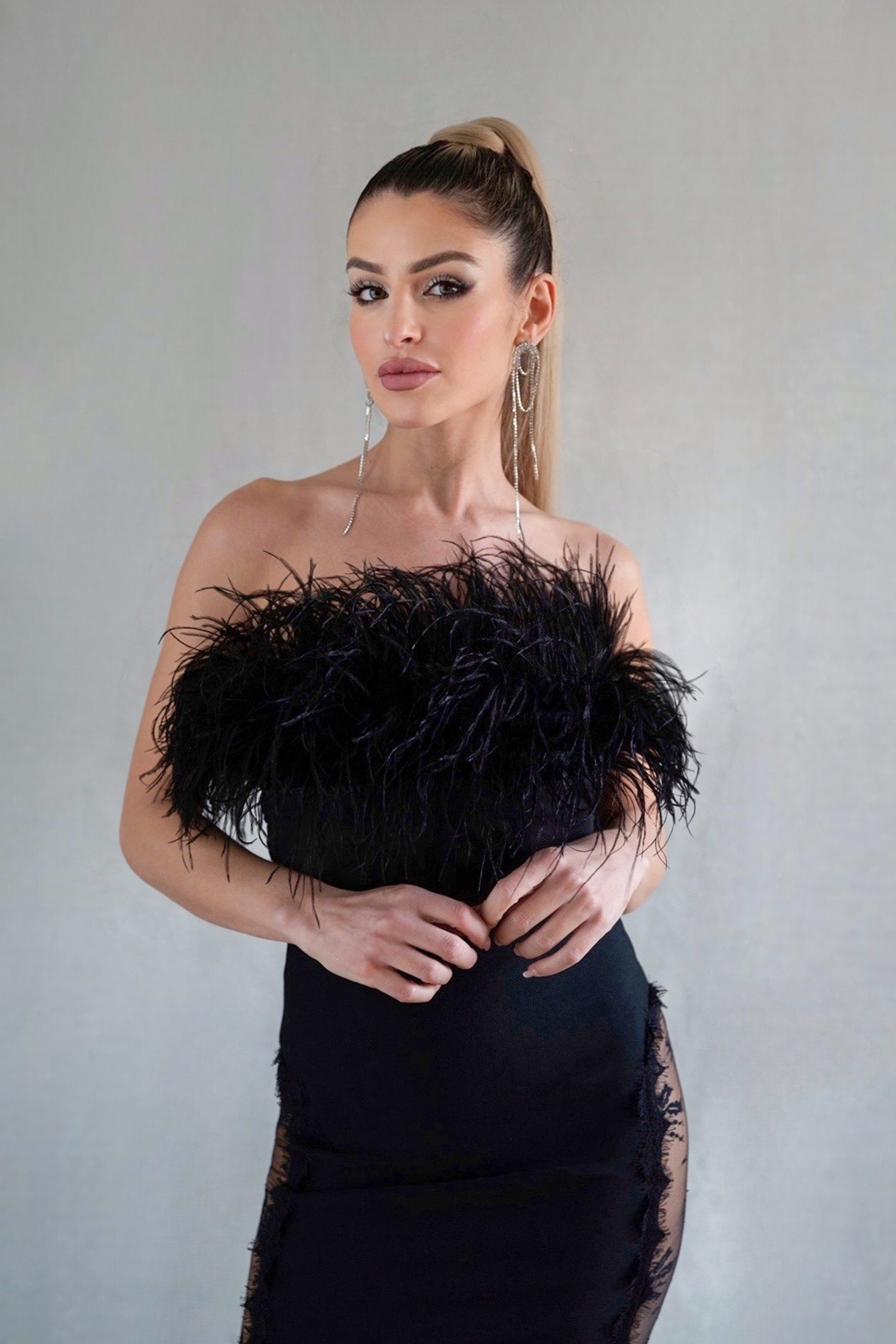 - Get the look: Aanisah Feather Midi Bandage Dress (The influencer is wearing the same style as this product)