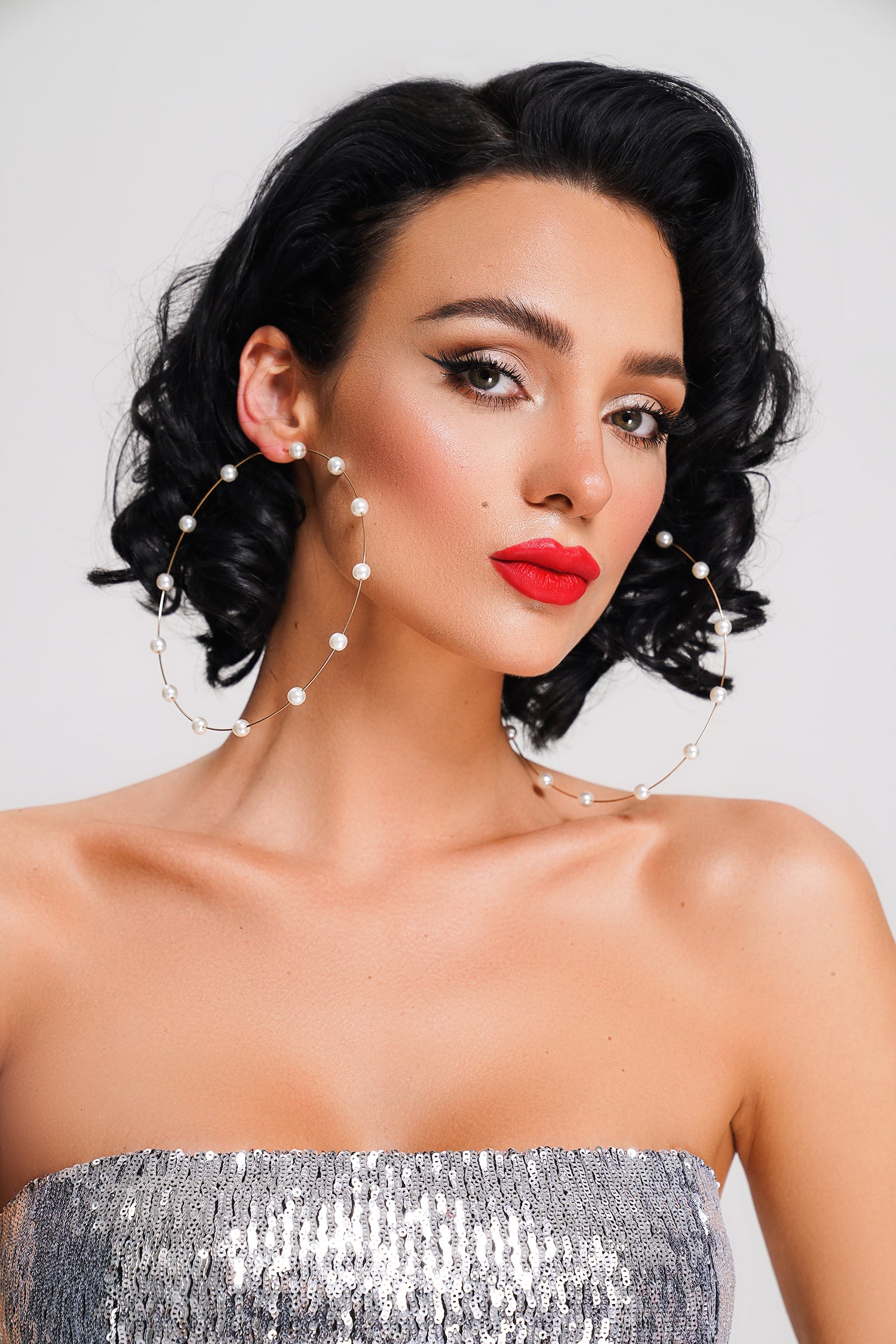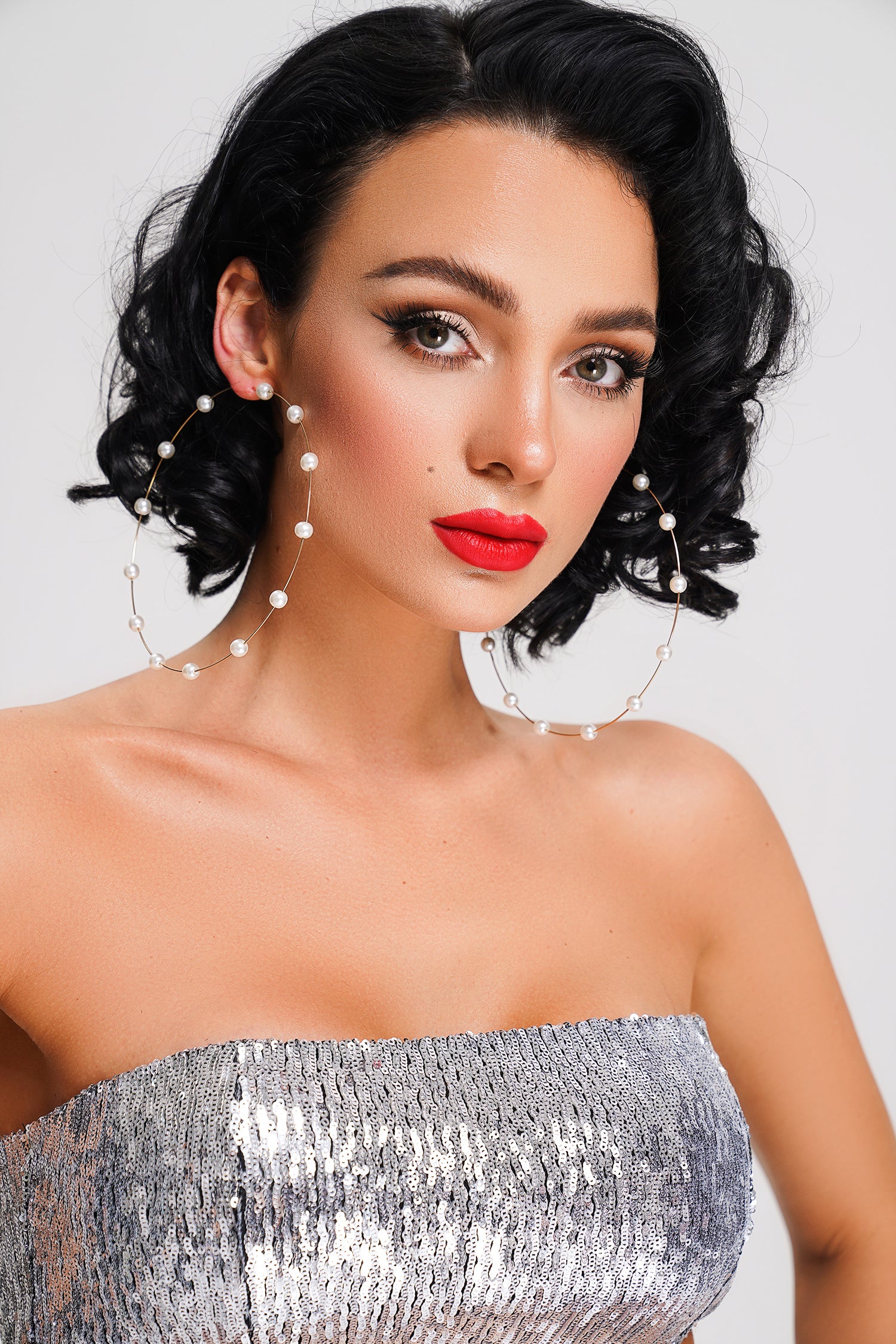 XThe Dinara Pearl Earrings are brilliantly beautiful and always a good idea! These large-sized gold-toned hoop earrings have a seamless design and feature metal color that is accented with glowing pearls. Pair with a chic mini dress and you'll be ready for any occasion!