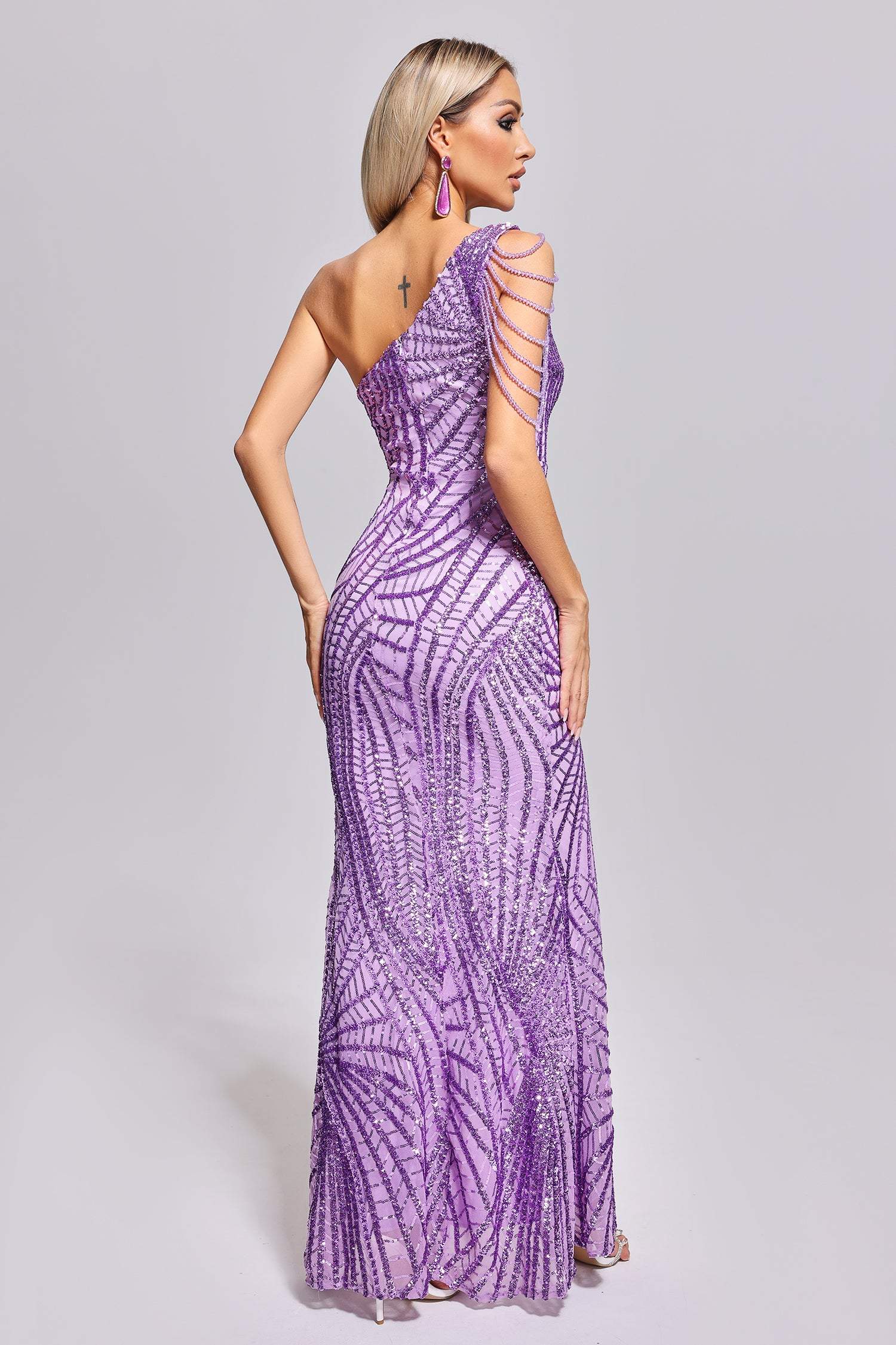 Nylea One Shoulder Slit Sequin Maxi Dress
