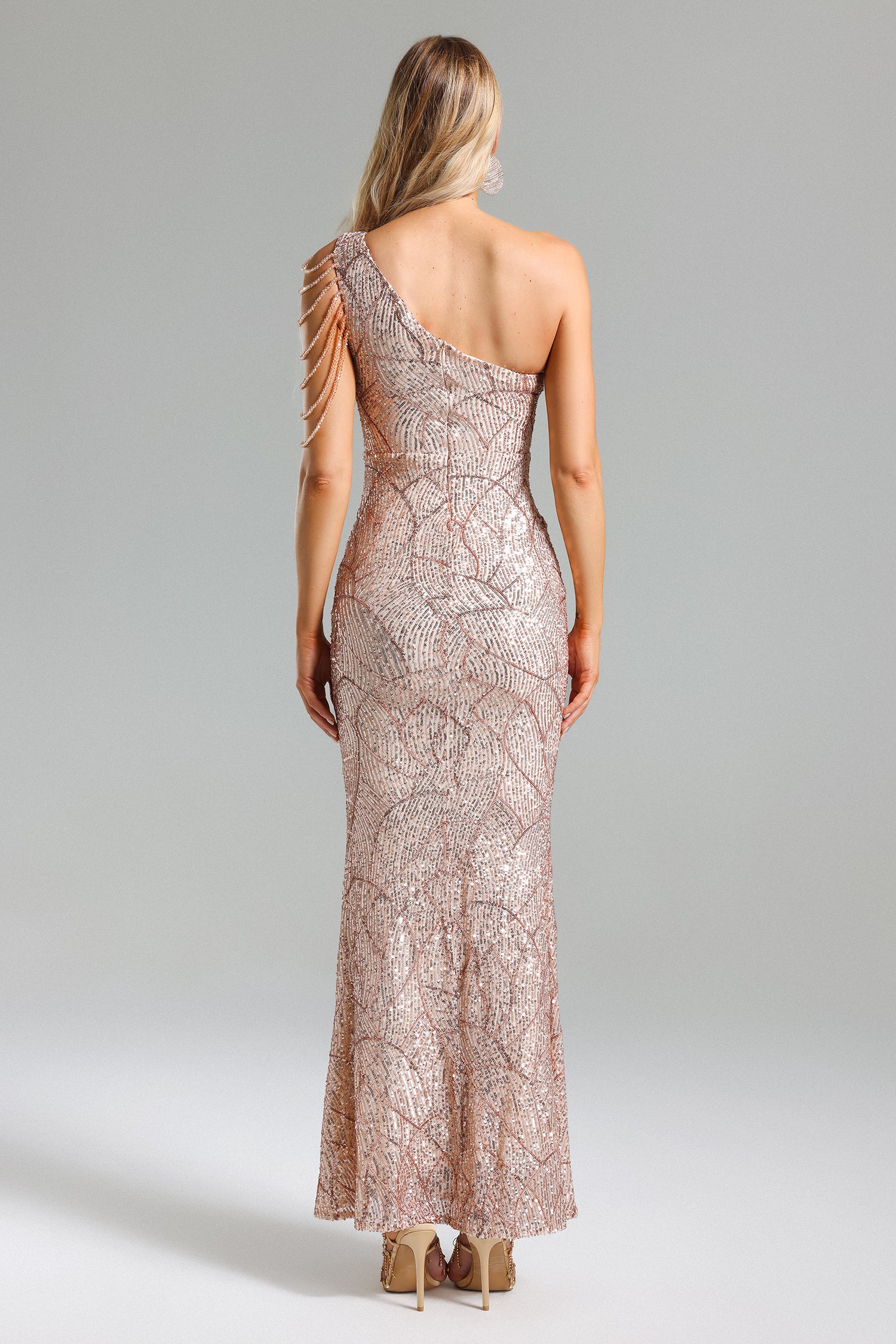 Paza Sequins One Shoulder Maxi Dress