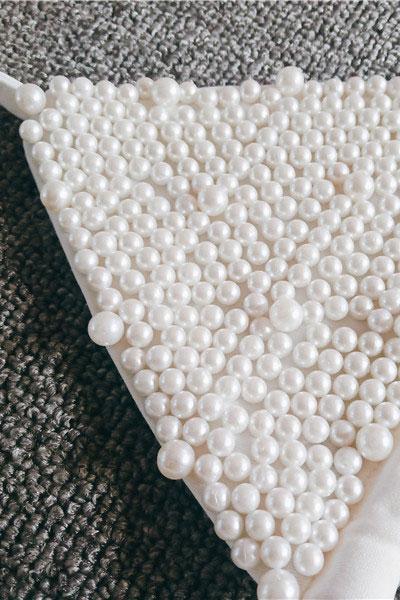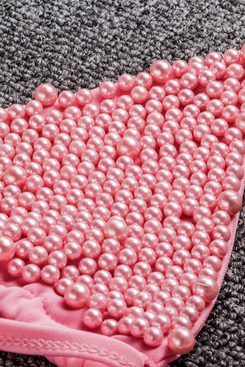 This Sisily Pearl Bikini is the key to shining in the sun at the beach. The top is a triangle cup and lace design. The whole bikini is decorated with pearls to create a perfect figure. such as the pearl elements on the chest and lace. adding a sense of fashion.