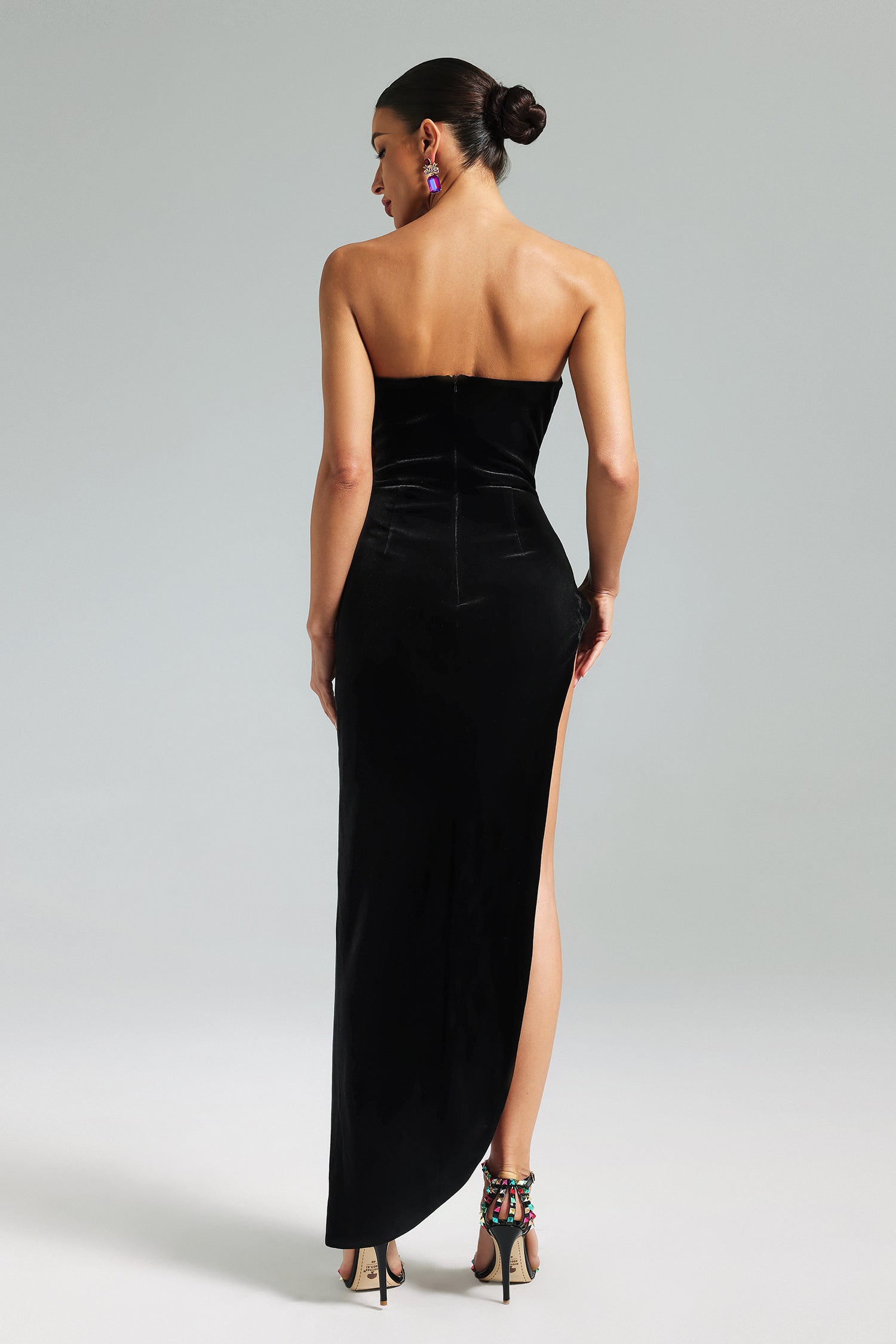 Turey Velvet Flower Slit Maxi Dress